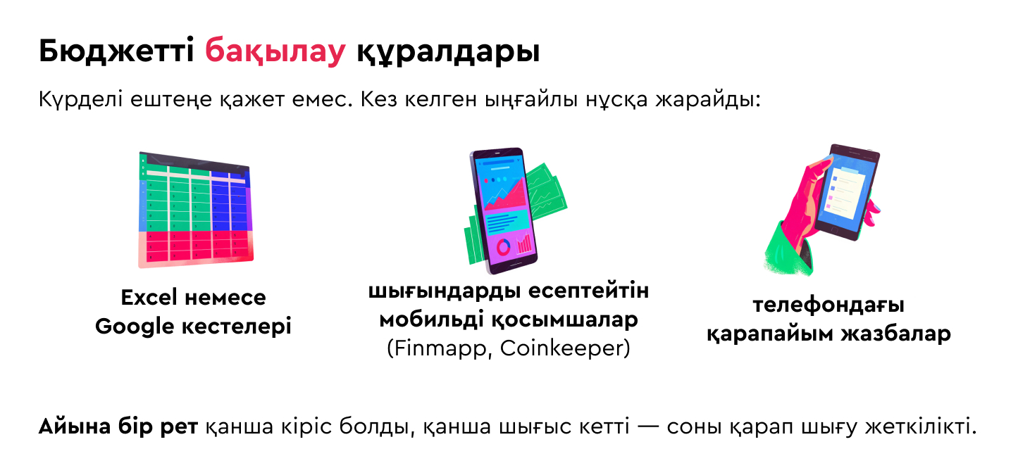 Демалыс, ірі сатып алу, оқу бір сәттік табысты айға байланысты болмауы керек.